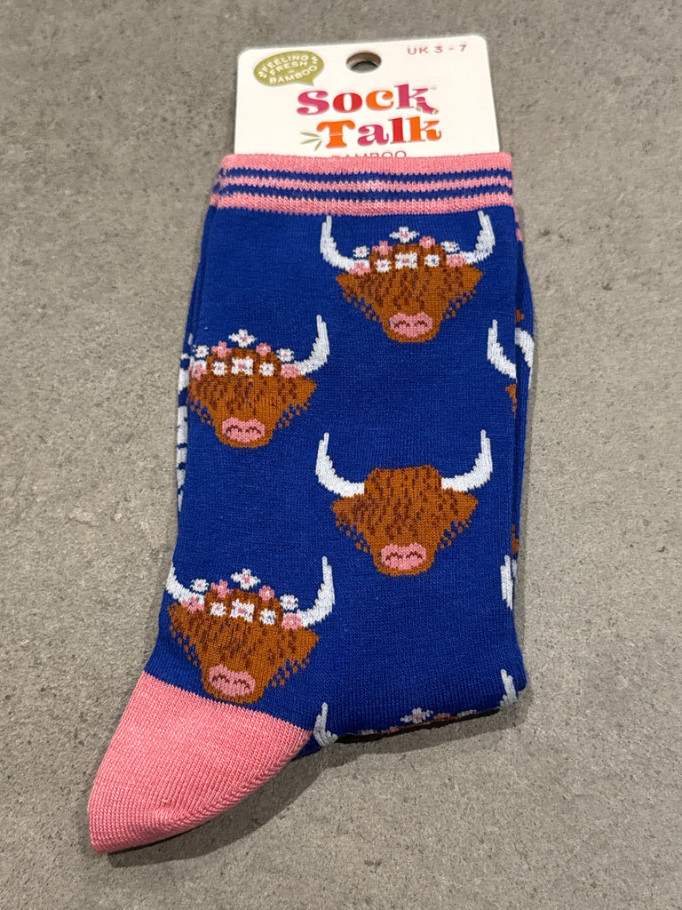 Sock Talk Highland Cow Women’s Blue Socks